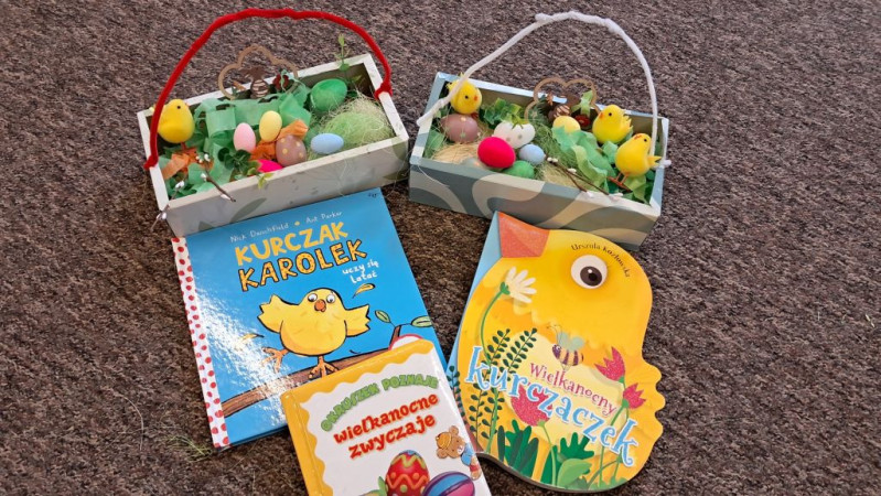 Książeczki dla dzieci o tematyce wielkanocnej i koszyki