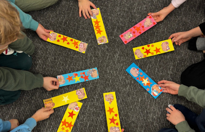 Lektura była pretekstem do dyskusji o tym, że warto próbować nowych rzeczy i doceniać codzienność. Nie zabrakło także rozmowy o prawdziwych kapibarach i ich zwyczajach. Później dzieci wykonały zakładki do książek z kapibarami.