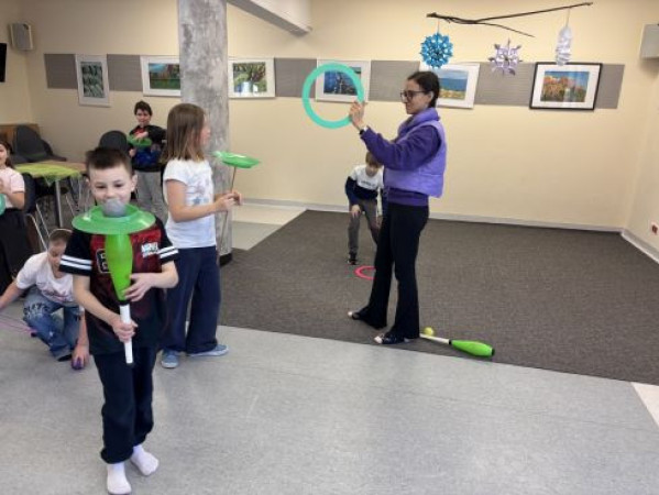 Jak co roku w ferie w Filii nr 36 odbywają się ciekawe warsztaty. W pierwszym tygodniu ferii dobrą zabawę zapewniła Fundacja Ośmiornice Kreatywności organizując trzydniowe warsztaty żonglersko-ruchowe, w których udział wzięło 10 osób.