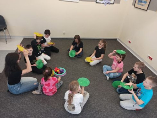 W poniedziałek dzieci stawiały pierwsze kroki w żonglerce. Poznały rekwizyty żonglerskie, chusty oraz maczugi i nauczyły się jak z nich korzystać. W środę uczestnicy trenowali nowe umiejętności wykorzystując do tego: piłki, obręcze i talerze. Natomiast w piątek było dużo ruchu i zabawy. Dzieci utrwaliły zdobyte umiejętności żonglerskie i podzieliły się z kolegami pomysłami na własne sztuczki z wykorzystaniem dostępnych rekwizytów. Dziękujemy wszystkim uczestnikom za zaangażowanie.