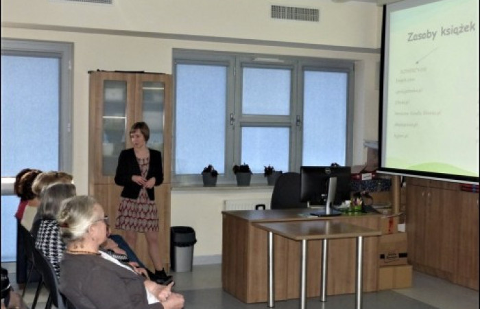Celem zajęć była promocja i popularyzacja e-booków i e-czytania. W prelekcji uczestniczyli seniorzy z Akademii Seniora oraz Klubu "Felin".