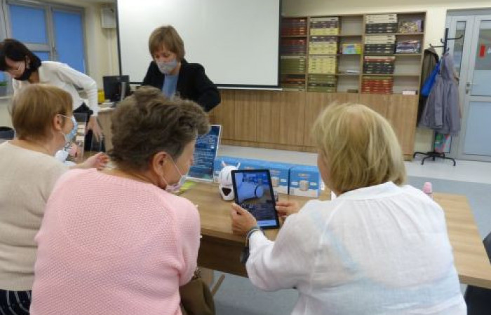 We wrześniu seniorzy wzięli udział w spotkaniu z okazji Roku Stanisława Lema. Uczestnicy zajęć eksplorowali świat Lema dzięki wystawie Lem oraz wystawie interaktywnej Bajki robotów – eksploratorium Stanisława Lema w bibliotece. W czasie zajęć wykorzystaliśmy roboty Photon i Genibot, płytkę Makey Makey kostki Merge Cube i książki AR: Bugs, IDinasaur, O wilku, który nie zjadł nikogo, O księciu, który dostał kosza i Mały Książę. Seniorzy poznali narzędzia pomagające w nauce programowania i obejrzeli film dokumentalny o Stanisławie Lemie.