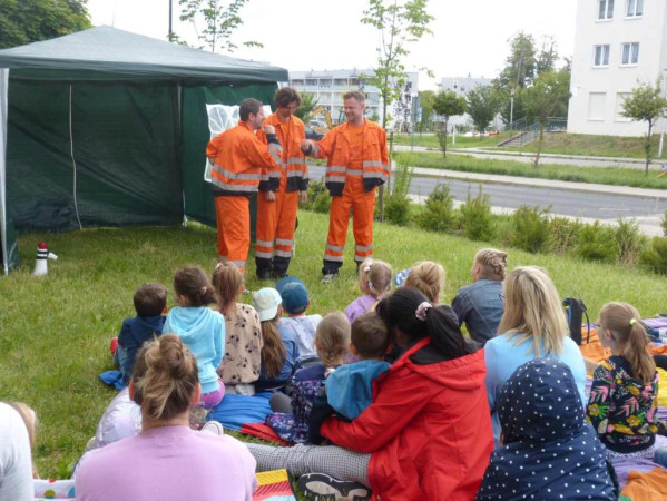Do Filii nr 36 zawitał Teatr w ogrodzie ze spektaklem „Nowe szaty króla” według Hansa Christiana Andersena. Tereny zielone pod biblioteką zapełniły się widzami, którzy aktywnie uczestniczyli w przedstawieniu.