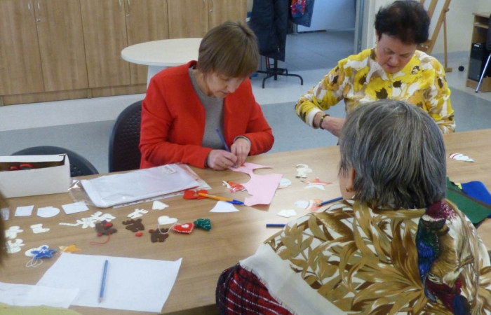 Panie z Akademii Seniora Filii nr 36 wzięły udział w warsztatach szycia ozdób z filcu. Praca wymagała precyzji i cierpliwości. Powstały urocze dekoracje, które już wkrótce ozdobią bożonarodzeniowe drzewka.