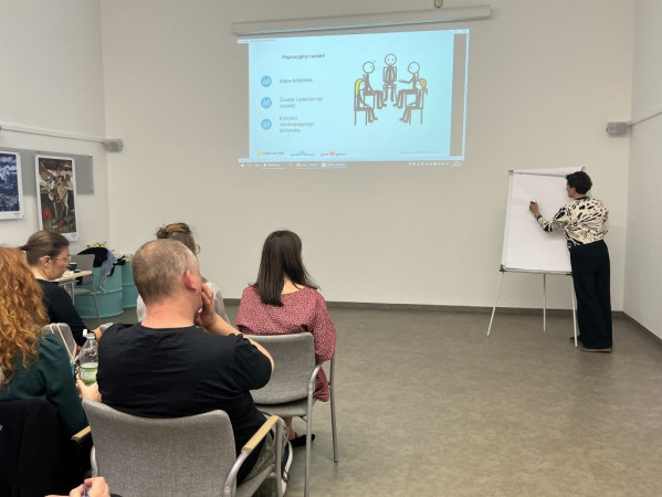 Podczas szkolenia bibliotekarze zapoznali się z dobrymi praktykami w kontaktach bibliotekarz - czytelnik w spektrum autyzmu. Dowiedzieli się, w jaki sposób ułatwić osobom z autyzmem korzystanie z bibliotek, które są dobrym miejscem do rozwijania kompetencji społecznych. Szkolenie zainspirowało do tworzenia wydarzeń sprzyjających budowaniu i utrzymywaniu relacji z użytkownikami w spektrum.