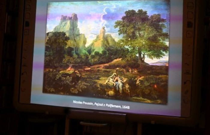 W trakcie wykładu dr Jacek Jaźwierski omówił idylliczne wersje krajobrazu i postrzegania natury w dziełach starożytnych. Przywołał obraz widoków z willi rzymskiej Pliniusza. Dokładnie omówił ideał natury zawarty w strofach wergiliańskich, a także krajobrazu ukształtowanego według rzymskiej doskonałości. Prezentowane widoki ukazywały ład, spokój i harmonię, a jednocześnie pełną różnorodność.