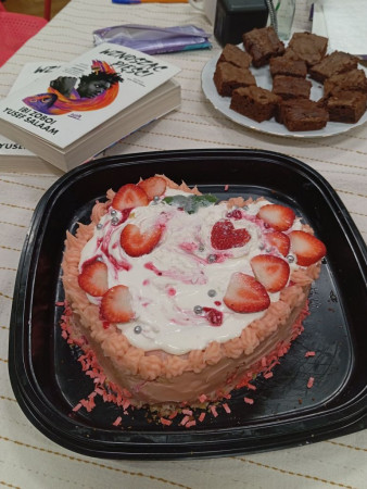 Nasza średnia ocena tej niezwykle poruszającej powieści to 9/10, choć nie obyło się bez dyskusji na temat zakończenia historii i dość niezwykłej formy narracji... Rozmowę umilił nam przepiękny pyszny tort walentynkowy autorstwa naszej klubowiczki Karoliny. Na następne spotkanie zapraszamy w piątek 22 marca o godzinie 16:00. Będziemy rozmawiać o pierwszym tomie "Kronik Czerwonego Klasztoru" Marii Turtschaninoff pt. "Maresi".