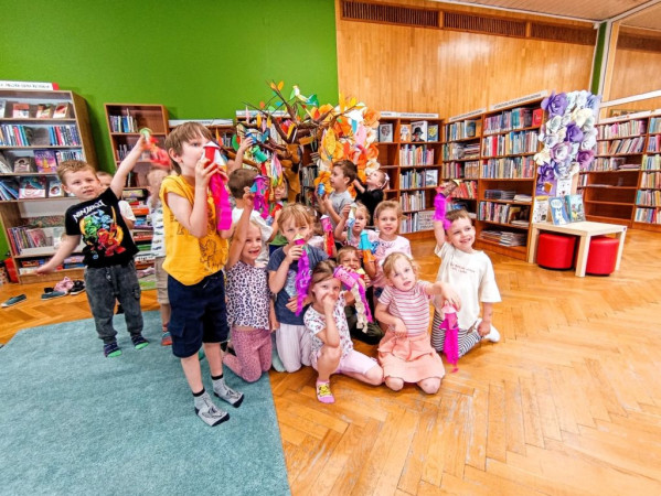 W miesiącach maj-czerwiec 2025 w naszej filii odbyło się 15 lekcji bibliotecznych z grupami przedszkolnymi i klasami szkolnymi - w tym również z przedszkolami odwiedzającymi bibliotekę po raz pierwszy. Podczas zajęć pracowaliśmy z dziećmi w temacie uczuć, emocji i naszych supermocy, świętowaliśmy rocznicę pierwszego lotu transatlantyckiego, przygotowywaliśmy prezenty na Dzień Mamy i Taty, przeżywaliśmy ekspedycję w kosmos drugiego w historii Polaka, a także rozmawialiśmy o wakacyjnych planach i marzeniach.