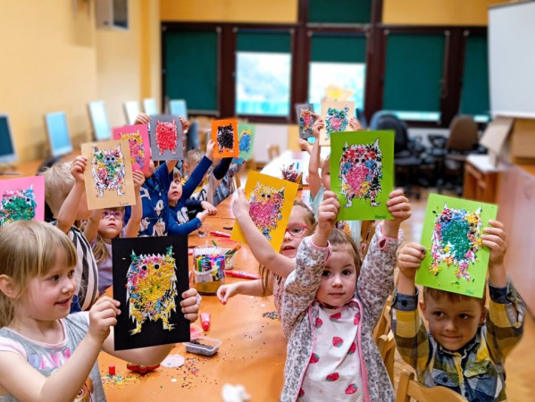 Przeczytaliśmy wspólnie całą listę książek - nie tylko tych "tradycyjnych", ale też pozycji typu "pop-up" czy książek paragrafowych i "silent booków" (książek bez słów). Literackie inspiracje twórczo wykorzystaliśmy, wykonując wiele wspaniałych prac plastycznych, które będą przypominać dzieciom o przyjaznym i otwartym miejscu, jakim jest pobliska biblioteka.