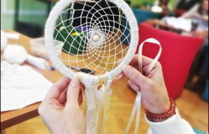 Uczestniczki z dużym zaangażowaniem i cierpliwością do plączących się kordonków, plątały własne amulety, które mają chronić przed złymi snami.