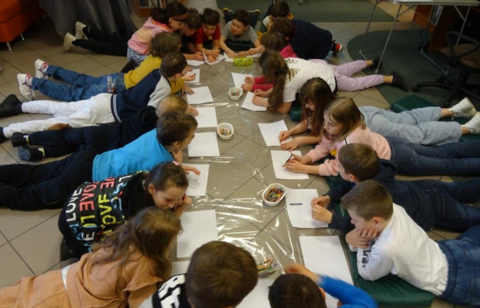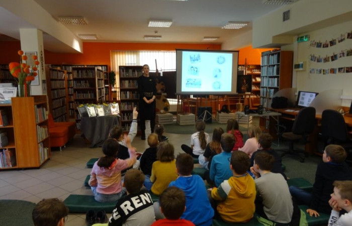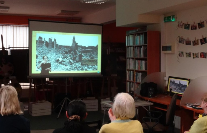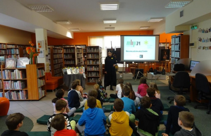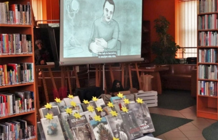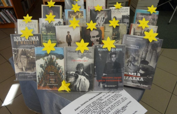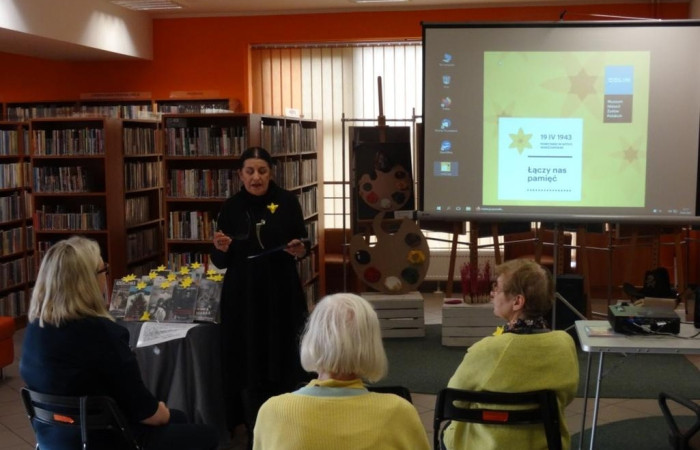 19 kwietnia osoby odwiedzające bibliotekę zostały obdarowane żółtymi żonkilami, mogły zapoznać się i wypożyczyć prezentowane na wystawie książki poświęcone tematyce powstania w getcie warszawskim. Odbyła się również projekcja animacji "Zdążyć przed Panem Bogiem" opartej na motywach tekstu Hanny Krall oraz projekcja filmu ”Życie podziemne. Historie "gruzowców" z warszawskiego getta”, podczas której wraz z prof. Barbarą Engelking odwiedziliśmy miejsca na warszawskim Muranowie, które 80 lat temu służyły za kryjówki m.in. dla Heny Kuczer (Krystyny Budnickiej), Stelli Fidelseid, Heleny Szylkret oraz Dawida Białogroda. Na zakończenie spotkania odbyła się transmisja online wywiadu Mariusza Szczygła z Hanną Krall. Dla młodszych odbiorców, uczniów klasy trzeciej Szkoły Podstawowej nr 50 filia przygotowała spotkanie wokół opowiadania Katarzyny Jackowskiej–Enemuo „BYŁO – NIE MA - JEST”. Warsztat poświęcony był emocjom. Uczniowie poznali opowiadanie o trudnym i ważnym temacie przeżywania i radzenia sobie ze stratą. Wraz z bohaterką opowiadania odbyliśmy podróż po miejscach, czasach i osobach, które były, których nie ma a chcemy o nich pamiętać. Dzieci poznały również literaturę dziecięcą poruszającą tematykę wojenną zaprezentowaną specjalnie na tą okoliczność.