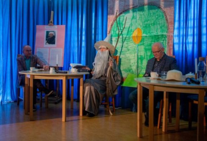 Następnie zaproszeni goście podzielili się z uczestnikami spotkania swoimi ulubionymi fragmentami utworów J.R.R. Tolkiena. Jednym z wspomnianych gości był tajemniczy, odziany w długą szatę i szpiczasty kapelusz siwy starzec. Wyglądał niczym Mithrandir zwany Gandalfem Szarym. Jednak czy aby na pewno to był on? Oceńcie sami. https://chrobry.lublin.pl/swiatowy-dzien-czytania-tolkiena/