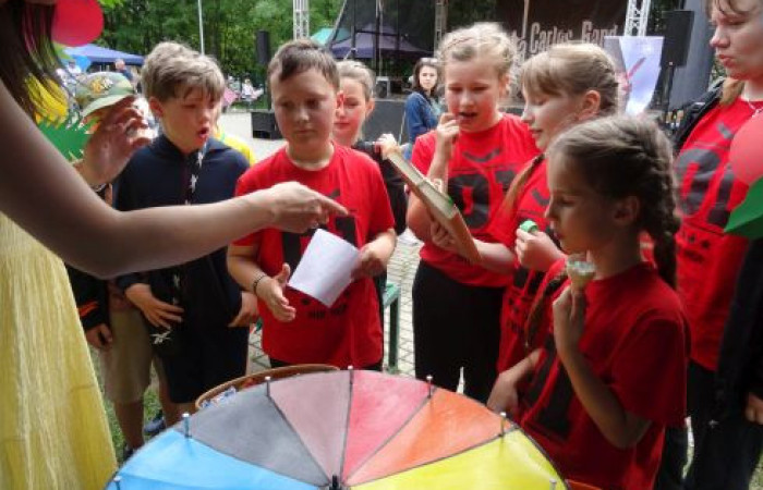 Podczas tegorocznego Festynu Osiedlowego XXII Dnia Węglina Filia nr 34 przygotowała mnóstwo atrakcji dla małych i dużych przy Węglińskim Kręciołku Literackim. Całe rodziny uczestniczące w festynie gromadziły się licznie przy stanowisku filii, aby wspólnie zakręcić kołem i odpowiedzieć na pytania.