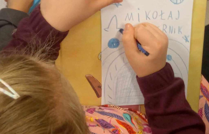 Po obejrzeniu filmu mówiącego o życiu tego niezwykłego człowieka, dzieci rozwiązywały przygotowany quiz oraz miały za zadanie zaprojektowanie własnej okładki do książki ,,O obrotach sfer niebieskich”. Osoba Mikołaja Kopernika stała się też pretekstem do zabawy i rozmowy o tym, czym jest talent, jakie zdolności posiada każdy z nas i jak ważne jest ich rozwijanie.