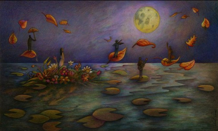Gdzieś między słowami - czytamy obrazem. Zwykle jednym, konkretnym lecz zamglonym i nieistotnym w swym konturze. Ilustracje autora są próbą graficznego przedstawienia "sedna tekstu", uchwycenia jego krótkiej, zrozumiałej i uniwersalnej wypowiedzi. Jest sprowadzeniem utworu literackiego do nieruchomego, jednego obrazu mający oddać jego kompletny charakter - ideę.