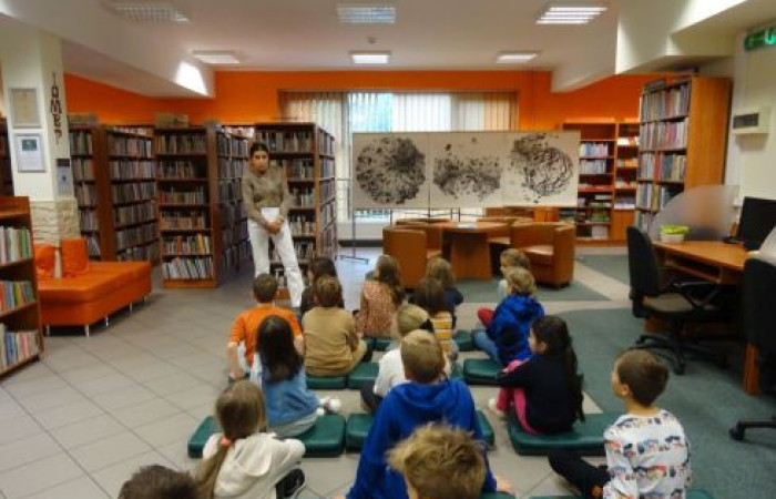 Filia 34 zaprosiła dzieci ze Szkoły Podstawowej im Bolesława Chrobrego na lekcję biblioteczną, której inspiracją była książka Petera Reynoldsa „Kropka”. Kropki towarzyszyły dzieciom na każdym kroku. Były kropkowe kalambury, zabawy ruchowe, książki o kropkach czy kropkowe malarstwo Aborygenów.