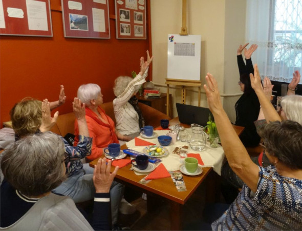 W drugiej części spotkania, korzystając z materiałów szkoleniowych Labib, zapoznałam Panie z zestawem ćwiczeń i aktywności, które mają na celu utrzymanie elastyczności umysłu, poprawę pamięci i koncentracji.