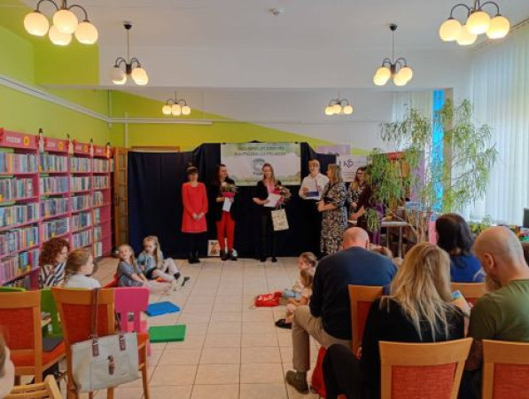 Fragment uroczystości wręczenia nagród w konkursie plastycznym w Filii nr 24