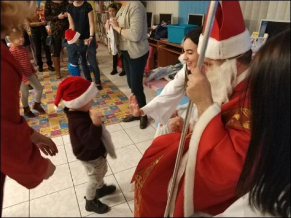 9 grudnia, jak co roku o tej porze, Bibliotekę przy ulicy Juranda 7 odwiedził Święty Mikołaj w asyście dwóch aniołków i z workiem pełnym prezentów dla najmłodszym czytelników. Zanim to jednak nastąpiło dzieci wraz z rodzicami uczestniczyli w różnych konkursach wiedzy o świętach i tradycjach bożonarodzeniowych. Nie zabrakło wspólnego śpiewania kolęd i życzeń świątecznych składanych przez organizatorów spotkania.