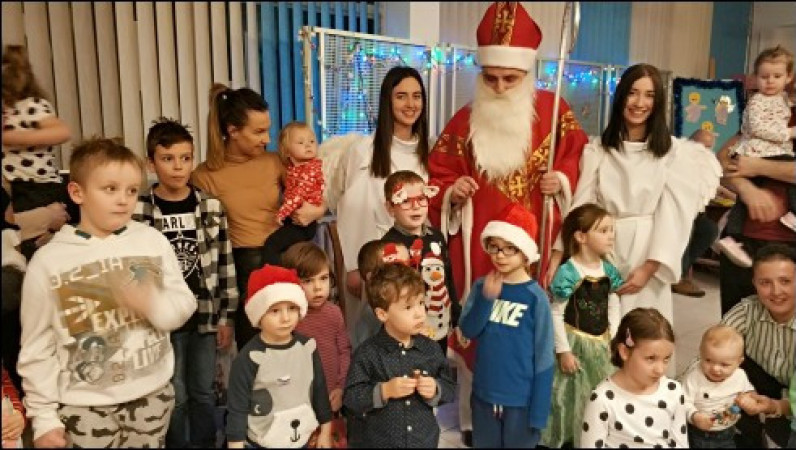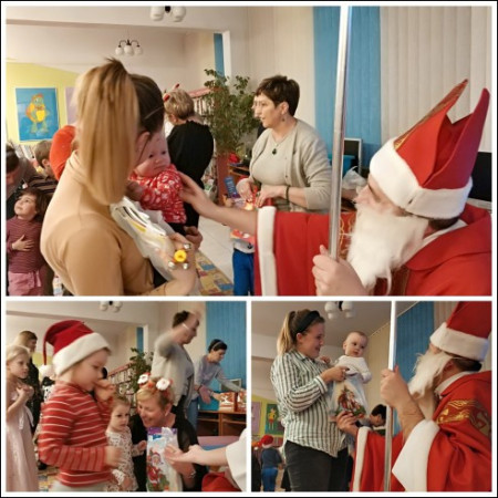 Przy blasku choinki i w obecności Pani Dyrektor i Pań z Przedszkola nr 49 Mikołaj hojnie rozdawał prezenty, a na twarzach dzieci natychmiast pojawiał się promienny uśmiech. Uwieńczeniem spotkania było wspólnie zrobione zdjęcie z tym wyjątkowo lubianym przez wszystkich świętym. Po skończonej zabawie uczestnicy spotkania rozeszli się do domu w doskonałych humorach i z głęboką nadzieją na ponowne mikołajkowe spotkanie za rok.