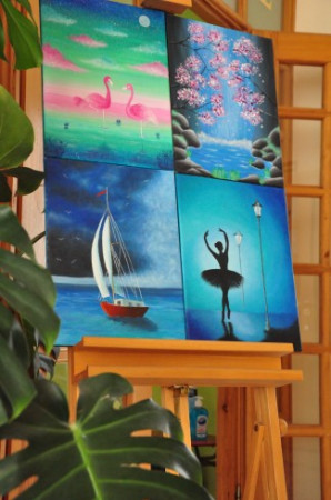 Pani Magda od dwóch lat zajmuje się malarstwem, wcześniej tworzyła grafiki. Najczęściej maluje abstrakcje, pejzaże i sztukę nowoczesną. Jej obrazy najczęściej malowane są akrylem.