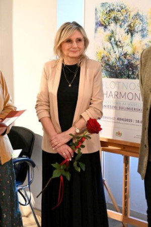 Patrząc na otaczające nas prace nietrudno zgadnąć, że tę wystawę stworzyła kobieta o wielkiej wrażliwości i duchowości, która z wielkim talentem w motywach roślinnych utrwaliła ulotne chwile. Dlatego tak cieszę się, że tym razem występuje u nas w roli głównej