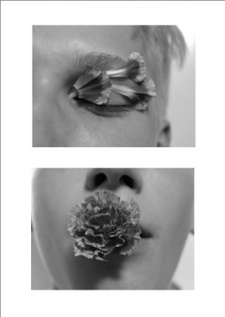 Joanna Oleniuk - [na dwóch fotografiach, na górnej – kwiat na powiece; na dolnej – kwiat w ustach]