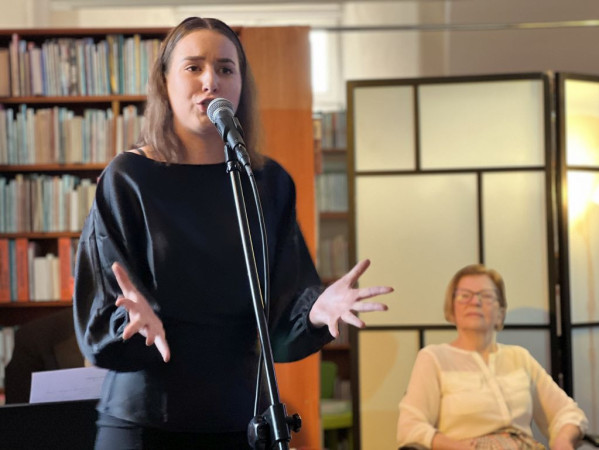 Emilia Marzec podczas mini recitalu w Filii nr 2