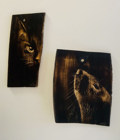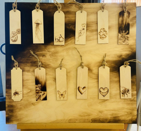 Oprócz dużych form - obrazów wypalanych w drewnie, obejrzeć można również mniejsze - zakładki do książek. Te z kolei inspirowane są miłością do literatury i chwil spędzanych z książką. To małe przedmioty, które mogą towarzyszyć czytelnikom w ich własnych historiach.