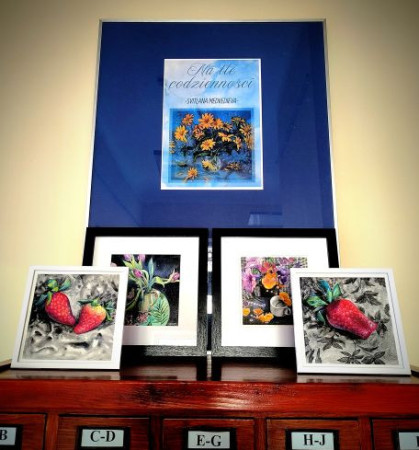 Wraz z nadejściem wiosny, gdy przyroda budzi się do życia, w naszej bibliotece można podziwiać wyjątkową wystawę prac ukraińskiej artystki, Svitlany Medvedievej. Jej dzieła, wykonane ołówkiem i akwarelą, ukazują kwiaty i owoce – detale codzienności, które w jej interpretacji nabierają niezwykłej subtelności i głębi.