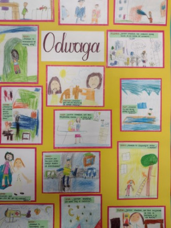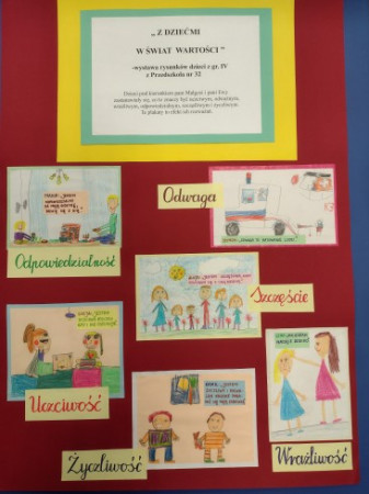 Dzieci pod kierunkiem Pań: Małgorzaty Chodorowskiej i Ewy Rak, zastanawiały się co to znaczy być: uczciwym, odważnym, wrażliwym, odpowiedzialnym, szczęśliwym i życzliwym. Poprzez rysunki wyraziły wartości jakimi kierują się na co dzień.