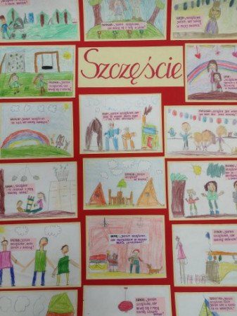 Zbiór rysunków dzieci przedstawiających szczęście