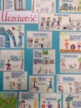 Zbiór rysunków dzieci przedstawiających uczciwość