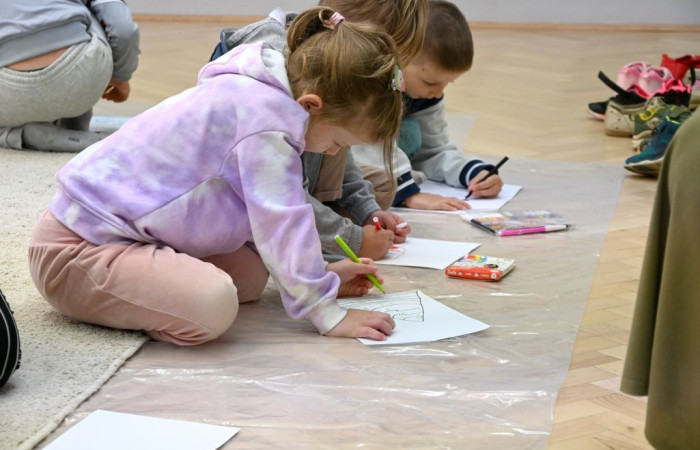 W pierwszej części warsztatu dzieci rozpoznawały różne emocje z plansz, które przywiozła ze sobą prowadząca. Następnie stawały na odpowiedniej planszy w zależności od komunikatu, jaki dawała im autorka – na przykład, gdy mówiła: „Jaką emocję czujesz, jeśli ktoś zaprosi cię na swoje urodziny?”. Zabawa ta pozwoliła uczestnikom w praktyczny sposób przyjrzeć się emocjom i lepiej zrozumieć ich znaczenie w codziennych sytuacjach.