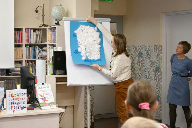 Na początku dzieci wysłuchały fragmentów opowieści o Yeti, którym towarzyszyły ilustracje wyświetlane na ekranie. Następnie brały udział w zabawie „lustrzanych odbić”, podczas której odgrywały różne emocje i miny. Kolejnym etapem było ćwiczenie wzmacniające poczucie własnej wartości – każdy uczestnik otrzymał kulkę z waty i miał opowiedzieć, w czym jest dobry. Z tych kulek powstał wspólny, puchaty Yeti, przyklejony na dużym kartonie.
