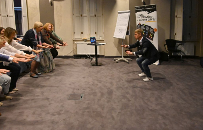 Na spotkaniu podkreślił, że kluczem do pozytywnej zmiany w życiu zawodowym i osobistym jest nasze nastawienie. Zamiast szukać winy i rozwiązań na zewnątrz, warto, jak mówił, zacząć od siebie, od refleksji nad tym, jak my sami patrzymy na świat, ludzi i codzienne obowiązki. Prelegent zwrócił uwagę, że optymistyczne podejście, uważność na siebie i innych oraz czułość w relacjach mają realny wpływ na jakość pracy i atmosferę w miejscu zatrudnienia. Przekonywał, że nigdy nie jest za późno, by zmienić sposób, w jaki postrzegamy siebie, swoje możliwości oraz otoczenie. To właśnie nasze wewnętrzne nastawienie może stać się punktem wyjścia do budowania lepszych, bardziej wspierających relacji, zarówno z samym sobą, jak i z innymi.