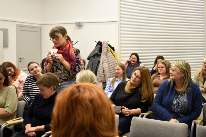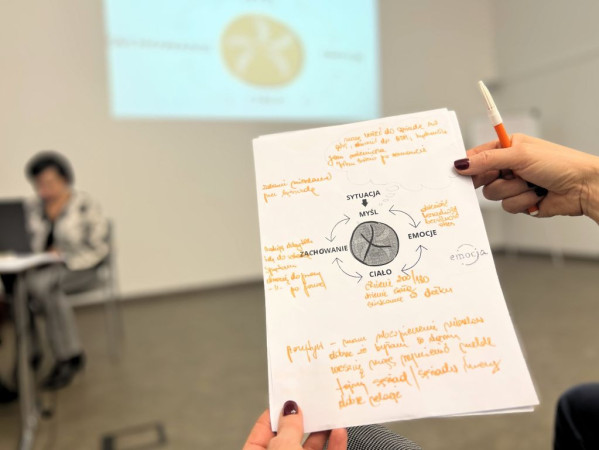 Dodatkowo prowadząca omówiła mapy stresu: mechanizmy i sygnały płynące z ciała i umysłu, zaprezentowała techniki oddechowe, wskazała, jak wspierać komunikację w stresie oraz zaproponowała pracę z wewnętrznym dialogiem, łączącą oddech i myśli.