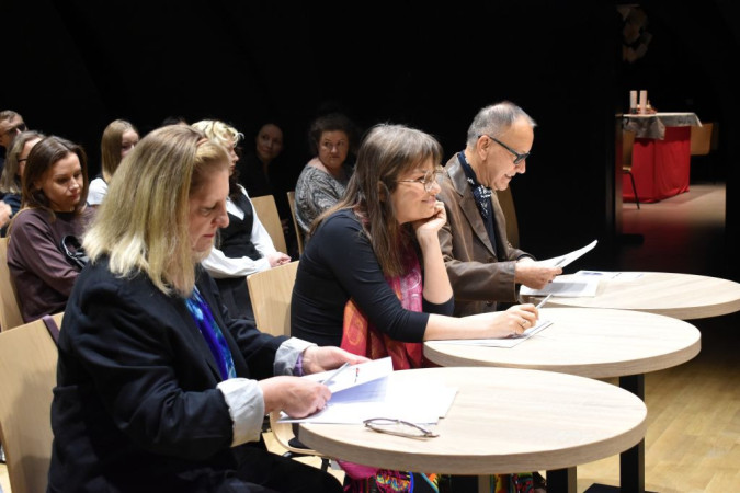 - przeprowadzono krótkie ćwiczenia praktyczne z zakresu emisji głosu, prawidłowego akcentowania oraz pracy z ciałem na scenie.