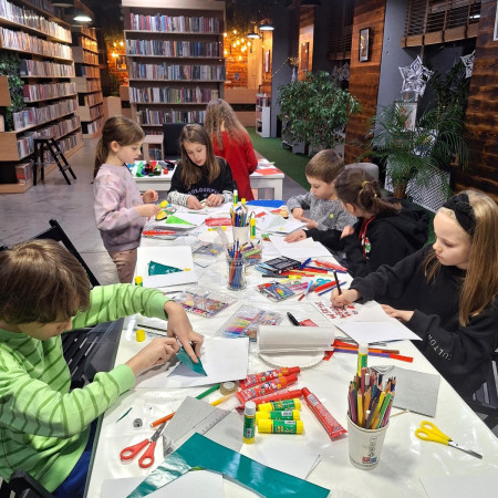 W ramach Festiwalu Bożego Narodzenia w Biotece odbyło się wiele radosnych i twórczych wydarzeń dla najmłodszych czytelników. Podczas warsztatów plastycznych „Zimowe miasteczko” dzieci wspólnie stworzyły wyjątkową makietę miasta, w której nie zabrakło domków, sklepu, biblioteki, szkoły, kina, a także fabryki prezentów i domu świętego Mikołaja. Na kolejnych zajęciach najmłodsi z wielkim zaangażowaniem ozdabiali chatkę Cioci Jadzi, zamieniając ją w bajkowy domek z piernika pełen świątecznych detali i kolorowych dekoracji. Podczas „Gwiazdkowej manufaktury” dzieci rozwijały zdolności manualne i wyobraźnię, tworząc własnoręczne kartki świąteczne z efektownymi, trójwymiarowymi choinkami, idealne do wręczenia bliskim. Z kolei w trakcie warsztatów „Zaplątane święta” uczestnicy poznali podstawy techniki makramy i z cierpliwością splatali sznurki, z których powstały oryginalne, choinkowe breloczki.