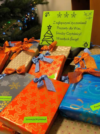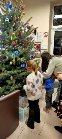 W ramach Festiwalu Bożego Narodzenia w bibliotece odbyły się wyjątkowe spotkania pełne twórczej atmosfery i świątecznej radości. Zorganizowano warsztaty haftu matematycznego, podczas których seniorki z zaangażowaniem wyszywały piękne kartki świąteczne. Również miały miejsce rodzinne warsztaty tworzenia ozdób choinkowych, które zgromadziły dzieci i dorosłych przy wspólnej pracy. Kulminacyjnym momentem było wspólne ubieranie choinki, a całe wydarzenie zakończyła wizyta Świętego Mikołaja, który obdarował uczestników prezentami. Spotkanie stało się okazją do integracji i wprowadziło wszystkich w magiczny nastrój Świąt. Dodatkowo na każdego czytelnika, który odwiedził bibliotekę czekał pięknie zapakowany prezent książkowy.