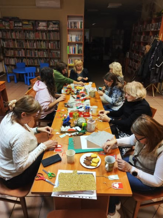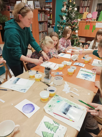 W bibliotece odbyły się warsztaty świąteczne, na których uczestnicy tworzyli akwarelowe pejzaże bożonarodzeniowe. Warsztaty prowadziła Joanna Demska. Uczestnicy projektowali i własnoręcznie wykonywali obrazki, które mogli wykorzystać do tworzenia kart pocztówkowych. Wspólne tworzenie świątecznych obrazków dostarczyło wiele niezapomnianych wrażeń, był to znakomity pomysł na kreatywne spędzenie czasu przed świętami.