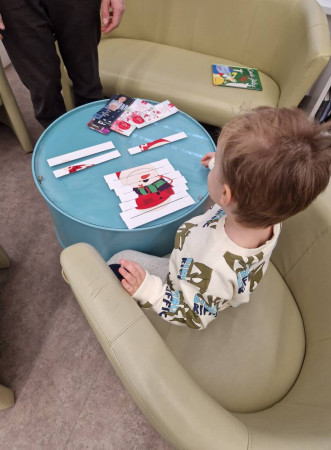 Dziecko układa świąteczną układankę
