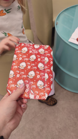Książka zapakowana w świąteczny papier