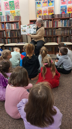 Bibliotekarka czyta dzieciom świateczne opowieści