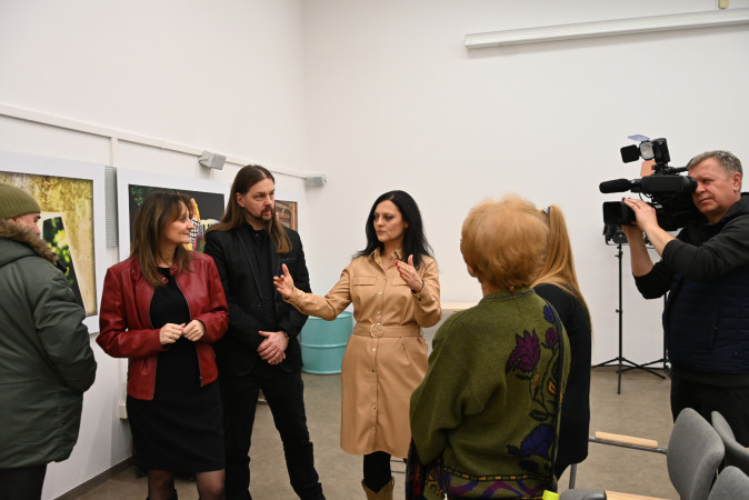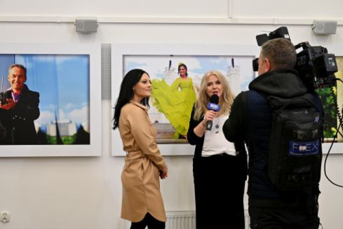 Honorowi goście wernisażu - dziennikarze TVP - wspominali o swoich doświadczeniach i humorystycznych sytuacjach podczas sesji fotograficznych.
