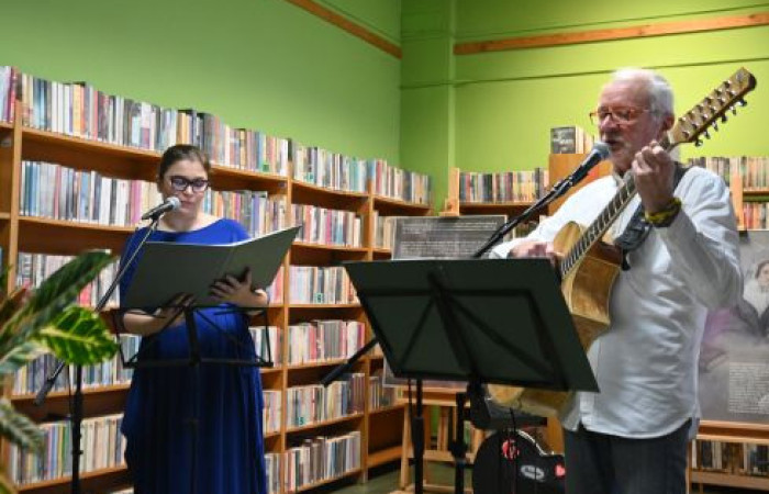 Na równo godzinę – jak za dotknięciem czarodziejskiej różdżki – sala naszej wypożyczalni zamieniła się w salę koncertową, w której uczestnicy mogli wysłuchać zarówno tradycyjnych, znanych wszystkim kolęd, jak i mniej znanych pastorałek, które od lat towarzyszą Świętom Bożego Narodzenia. Występ przygotowany przez lubelskiego barda Ryszarda Borkowskiego i jego żonę Klarę spotkał się z niezwykle ciepłym odbiorem publiczności.