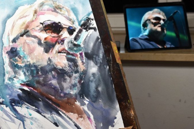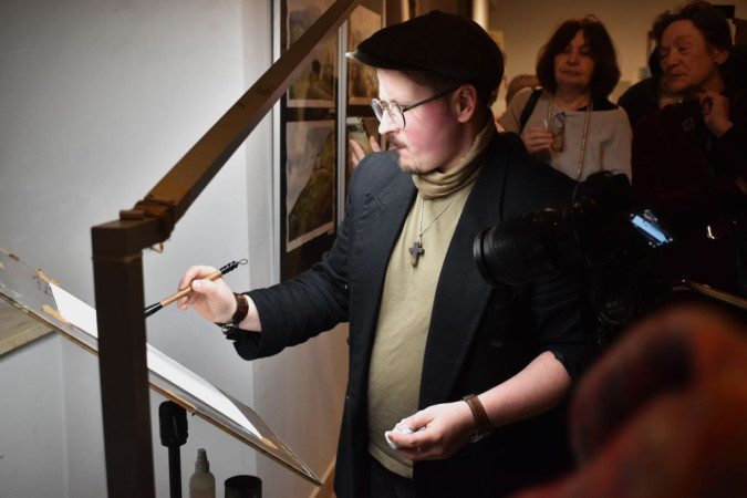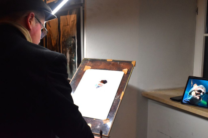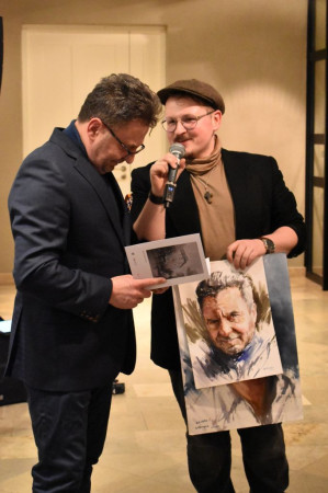 Po oficjalnej części wernisażu ponownie rozbrzmiała muzyka skrzypcowa, a chwilę później Miłosz Nosiadek uchylił rąbka tajemnicy swojego warsztatu, na oczach gości malując z fotografii portret Krzysztofa Cugowskiego.