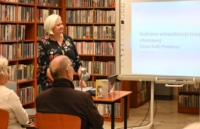 11 lutego 2026 roku w Filii nr 2 Miejskiej Biblioteki Publicznej w Lublinie odbył się wykład dr hab. Katarzyny Smyk pt. „Bajkowe wizualizacje traumy obozowej. Casus Zofii Posmysz”. Spotkanie zorganizowano w ramach XVII edycji otwartych wykładów z historii sztuki „Krytyka obrazu – od Platona do Visual Studies”, przygotowanej we współpracy z Instytutem Nauk o Kulturze UMCS oraz Lubelskim Towarzystwem Zachęty Sztuk Pięknych.