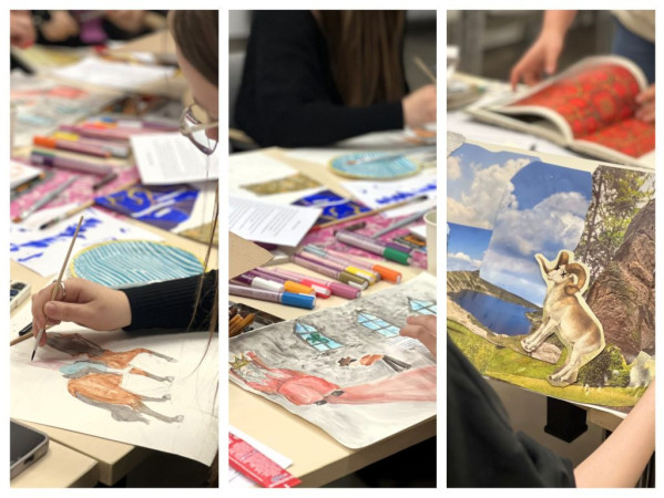 Trwa praca nad kolażami podczas zajęć ilustratorskich