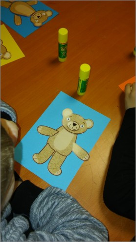 Chwilą odpoczynku od wytężonej uwagi było układanie puzzla, oczywiście z misiem! Trzeba było nie lada spostrzegawczości, by zauważyć, że w tym zadaniu była zastawiona pewna pułapka. Szczęśliwie – po długich naradach – nikt w nią nie wpadł. Problemem nie był również „spacer nad rwącą rzeką” polegający na przejściu po zaimprowizowanym mostku z misiem na rękach. Nieco trudności i mnóstwo śmiechu przyniosło ostatnie zadanie. Polegało ono na przyczepieniu tekturowemu misiowi noska. Łatwe? Tylko z pozoru. Bo jak przyczepiającemu nosek zasłoni się oczy chustą – sytuacja diametralnie się zmienia. Trzeba było mnóstwo cierpliwości i dokładności, żeby poprawnie wykonać zadanie…